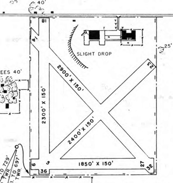 depicted the field as having 4 unpaved runways, with the longest being the 2,600' north/south strip.