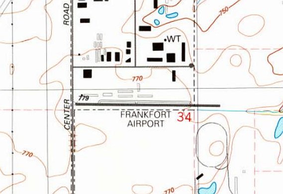 The 1973 USGS topo map depicted Frankfort Airport as single paved east/west runway, labeled genericaly as “Landing Strip”,