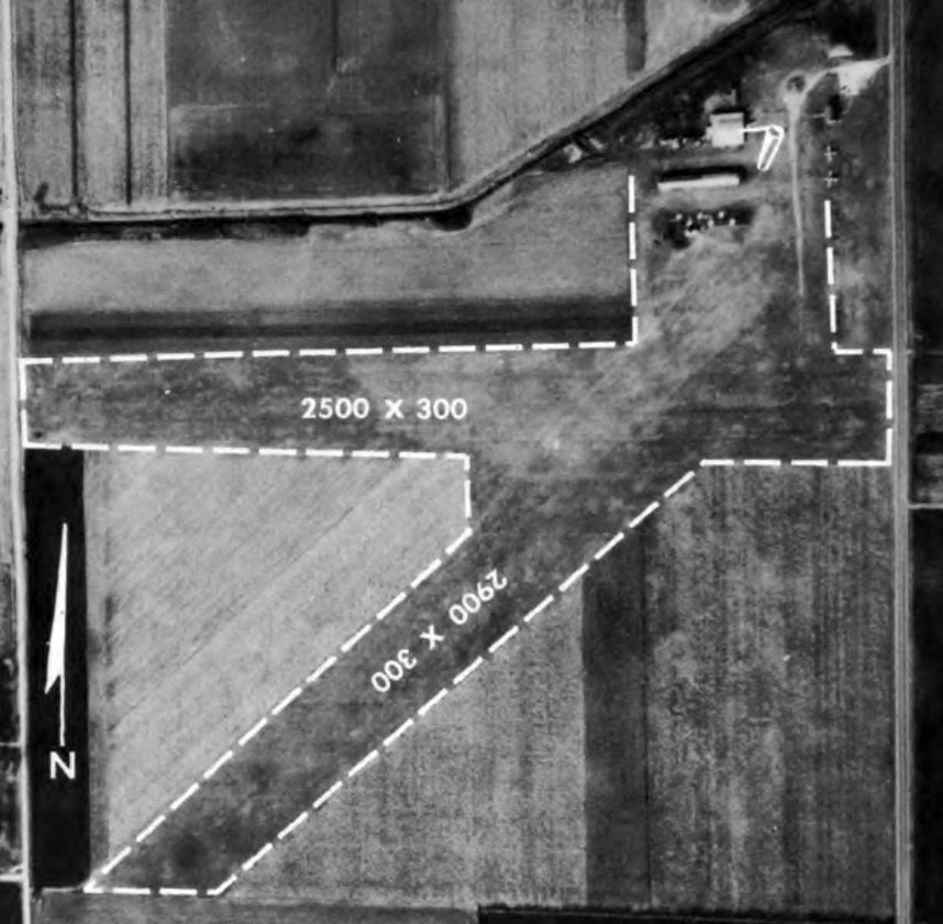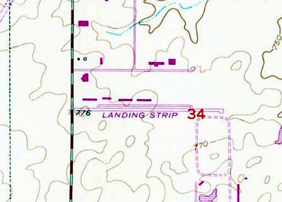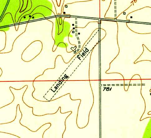 It depicted a single unpaved east/west runway, with a small building on the southeast side.