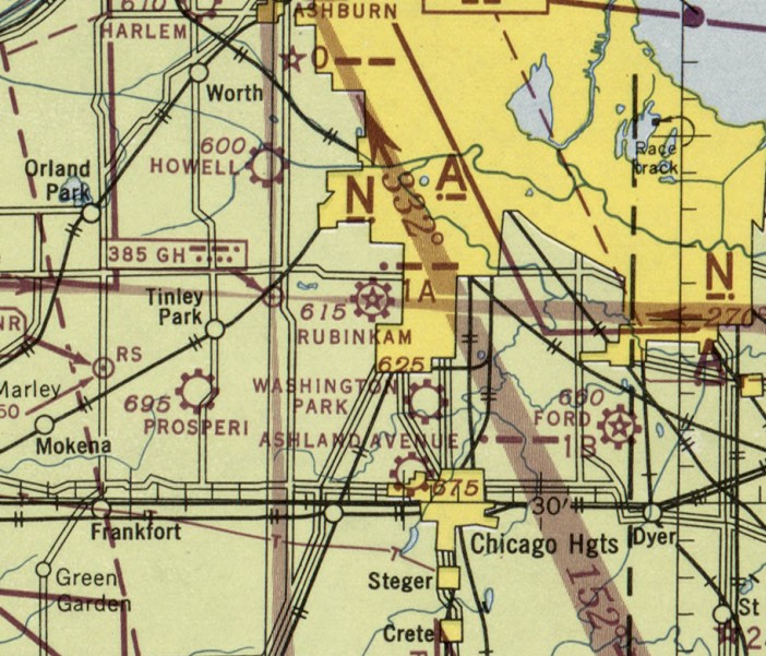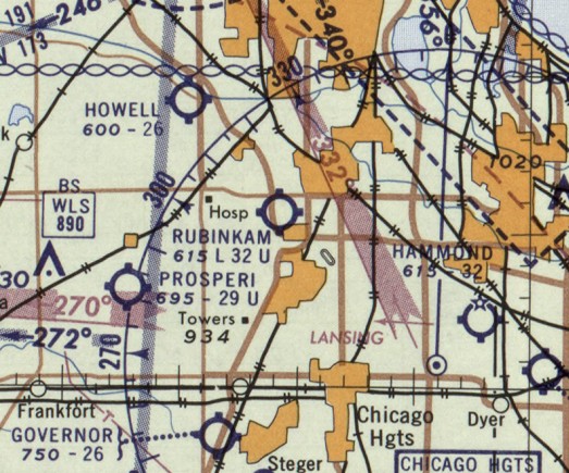 The last aeronautical chart depiction which has been located of Rubinkam Airport was on the January 1960 Chicago Sectional Chart.