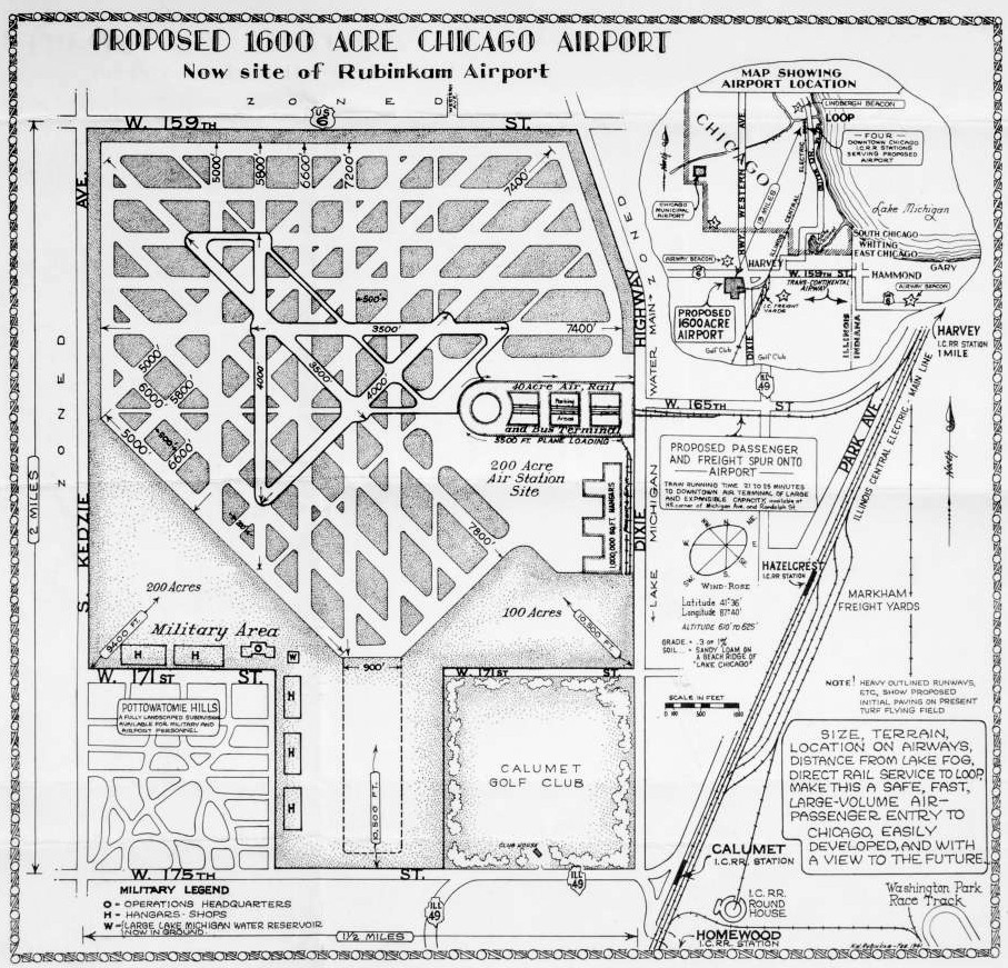 A 2/41 proposal for turning the small (216 acre) Rubinkam Airport into a "large-volume" (1,600 acre) Chicago Airport.