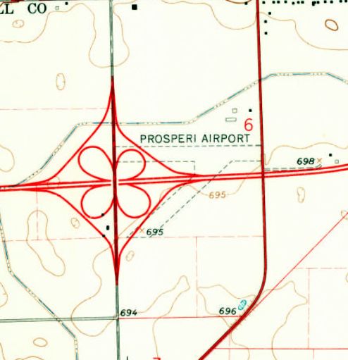 Prosperi Airport, as depicted on the June 1944 Chicago Sectional Chart.