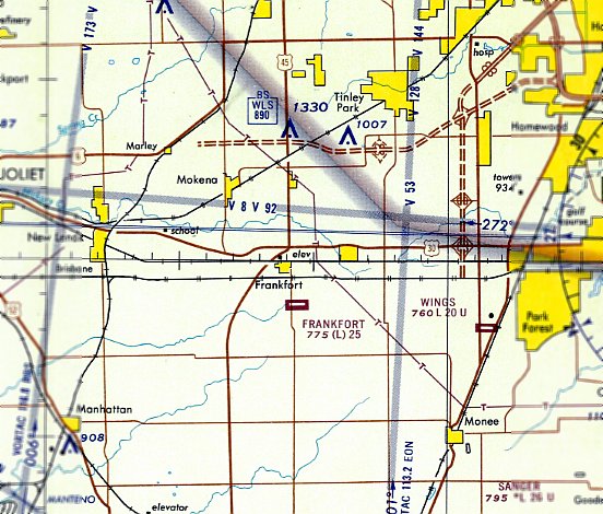 The earliest depiction which has been located of Frankfort Airport was on the May 1965 Chicago Sectional Chart.