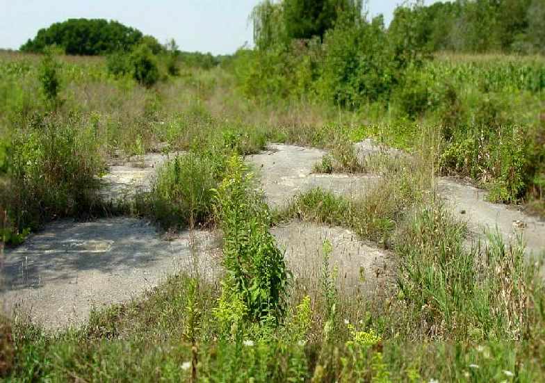 A 2002 photo by Sam Lee looking west along the extremely overgrown remains of Runway 27 at Governor's Airpark.