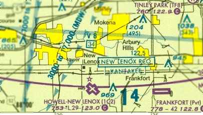 The April 2017 Chicago Terminal Chart depicted Frankfort Airport as a private airfield having a 4,200' paved east/west runway.