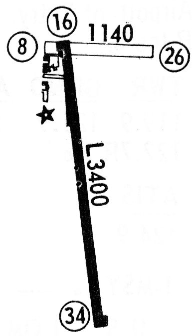 as having a 3,466' paved Runway 16/34 and an 1,140' turf Runway 8/26.