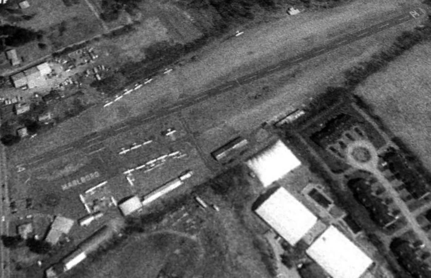 The earliest photo which has been located of Windle Airport was a circa 1950s aerial view looking northeast (courtesy of Fred Holland),