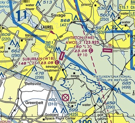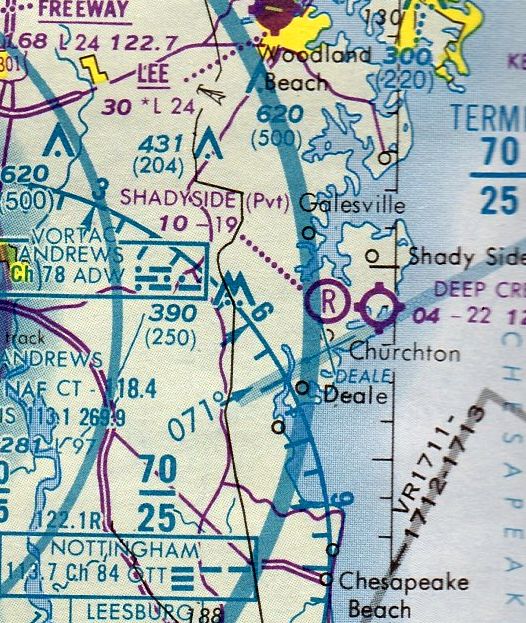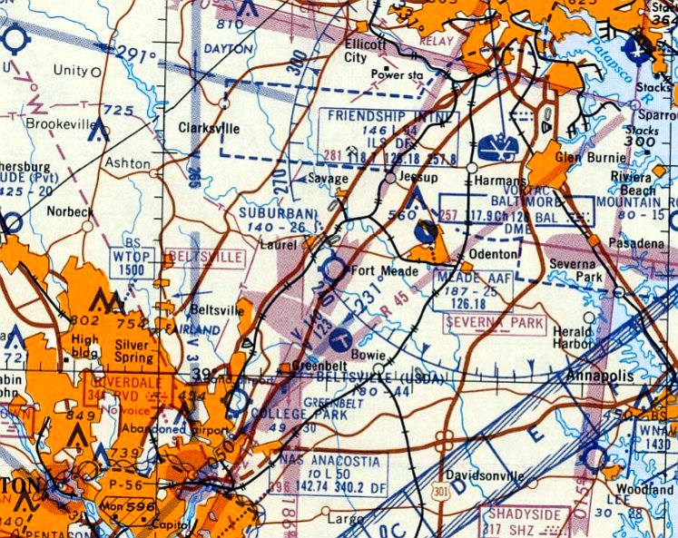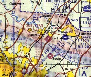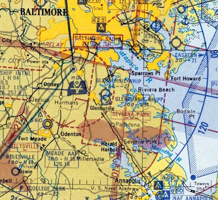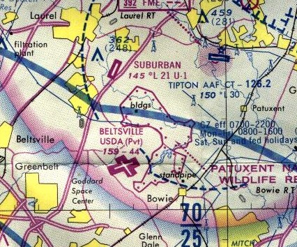 The last aeronautical chart depiction which has been located of the original Fort Meade AAF was on the 1960 Washington Local Aeronautical Chart.
