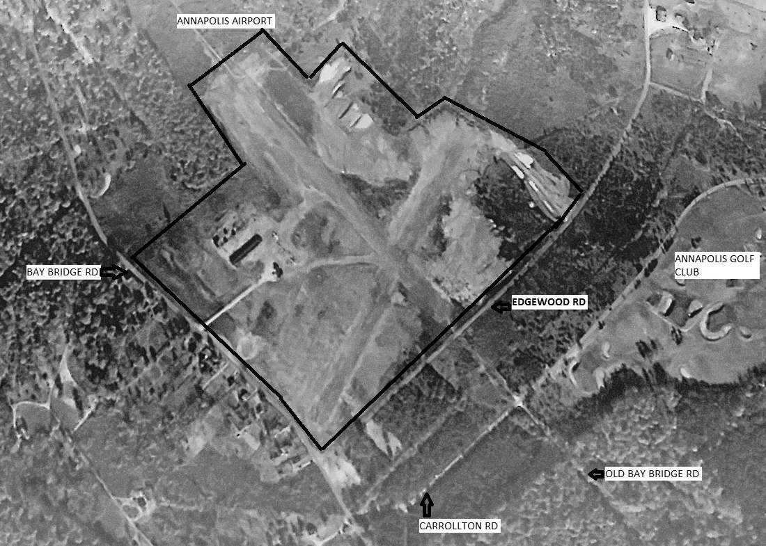 The site of Annapolis Airport is located north of the intersection of Bay Ridge Road & Edgewood Road.