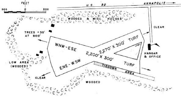 A 1947 airport directory described Annapolis Airport as a 196 acre property 2 miles south of Annapolis.
