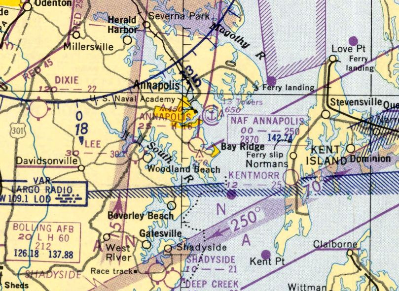 The last depiction which has been located of Annapolis Airport was on the July 1950 Washington Sectional Chart.