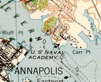 The 1937 USGS topo map depicted the hangar of the Annapolis seaplane facility, but did not label it.