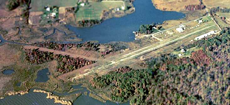 A hangar & shop were situated southeast of the runways, and a ramp & dock for the seaplane base was along the bank of Marley Creek.