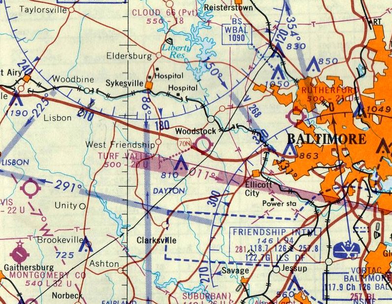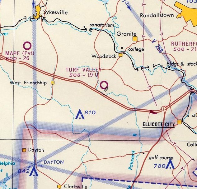 The last aeronautical chart depiction which has been located of Turf Valley Airport was on the March 1967 Washington Sectional Chart.