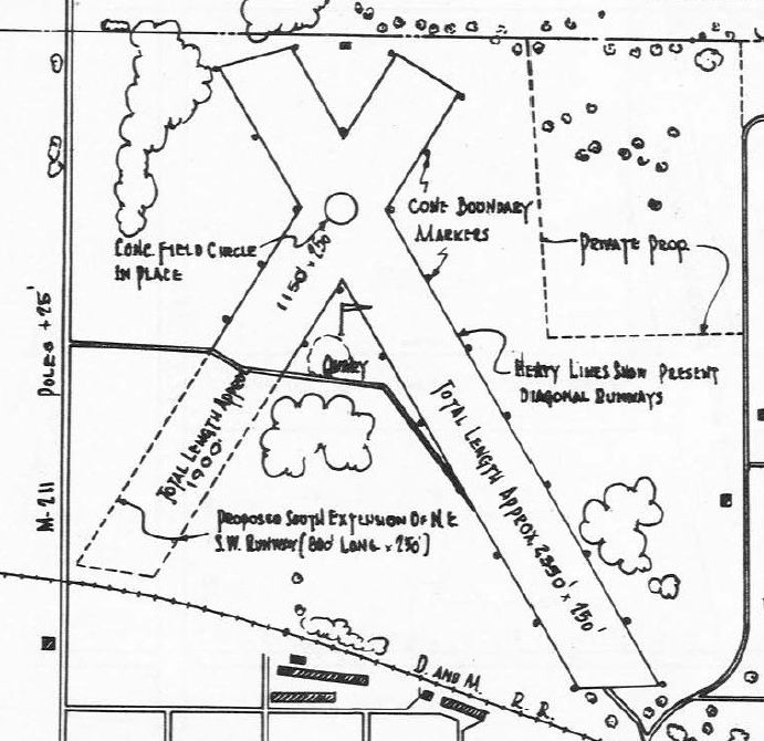 It showed traces of a grass northwest/southeast runway, with an airport circle marking in the center.