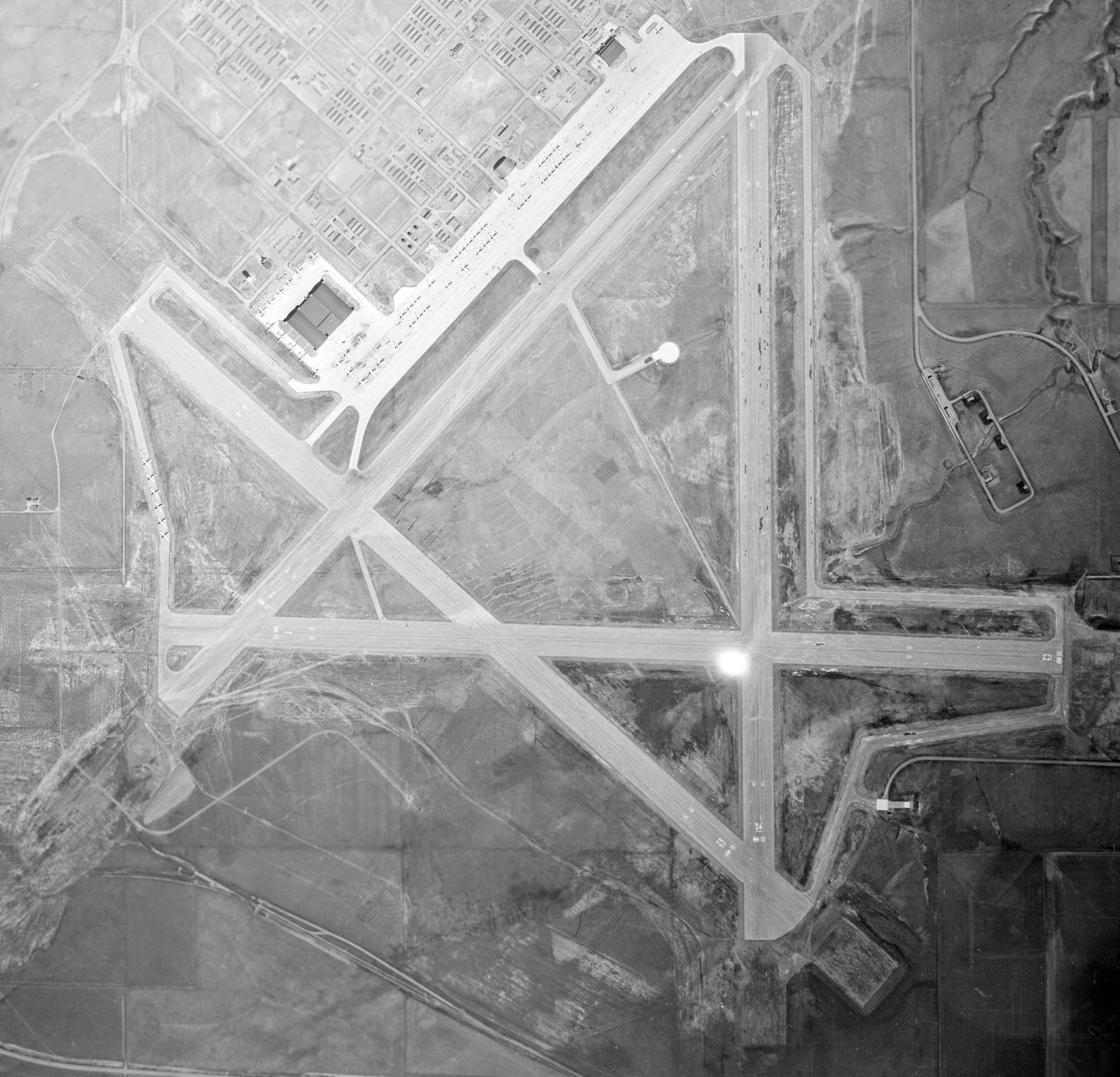 A 9/18/64 7/10/46 USGS aerial view depicted Malmstrom AFB as having a paved northeast/southwest runway, with the prior 3 WW2-era runways no longer active.