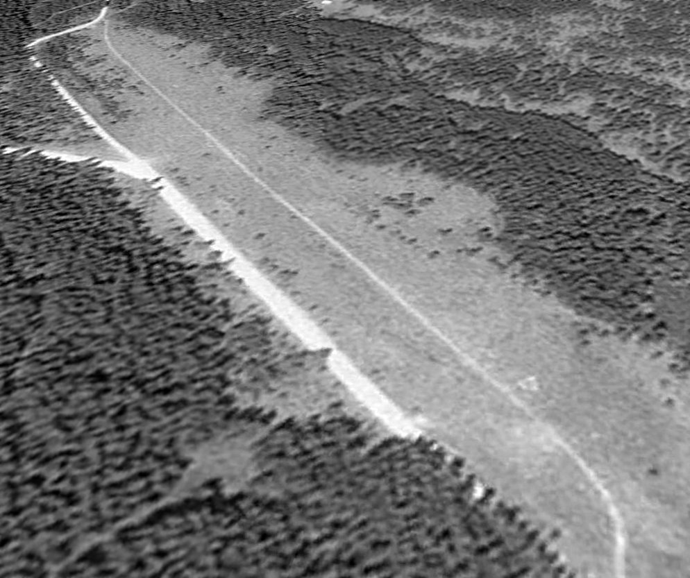 A 2014 aerial view of the site of the 681st Aircraft Control & Warning Squadron Airfield showed faint traces remained of the 3 unpaved runways.