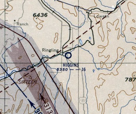 Higgins Airfield, as depicted on the October 1955 Butte Sectional Chart.