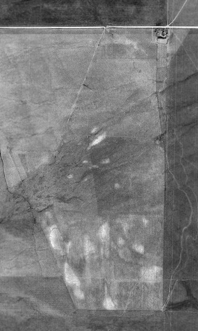 A 2014 aerial view (courtesy of Lee Corbin) showed the remains of the T-hangar on the southeast corner of the Higgins Airfield site.