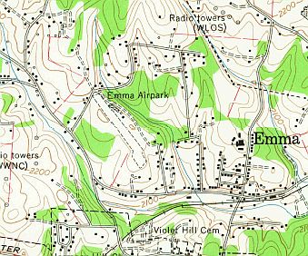 at Lake Logan (lakes, cabins, hunting lodges), and the remains of a concrete landing strip is still there."