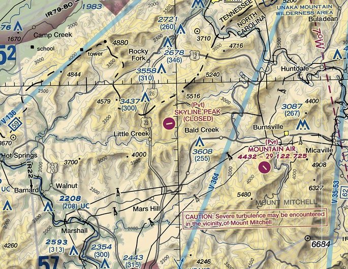 The 2022 Sectional Chart depicted Skyline Peak Airport as closed.