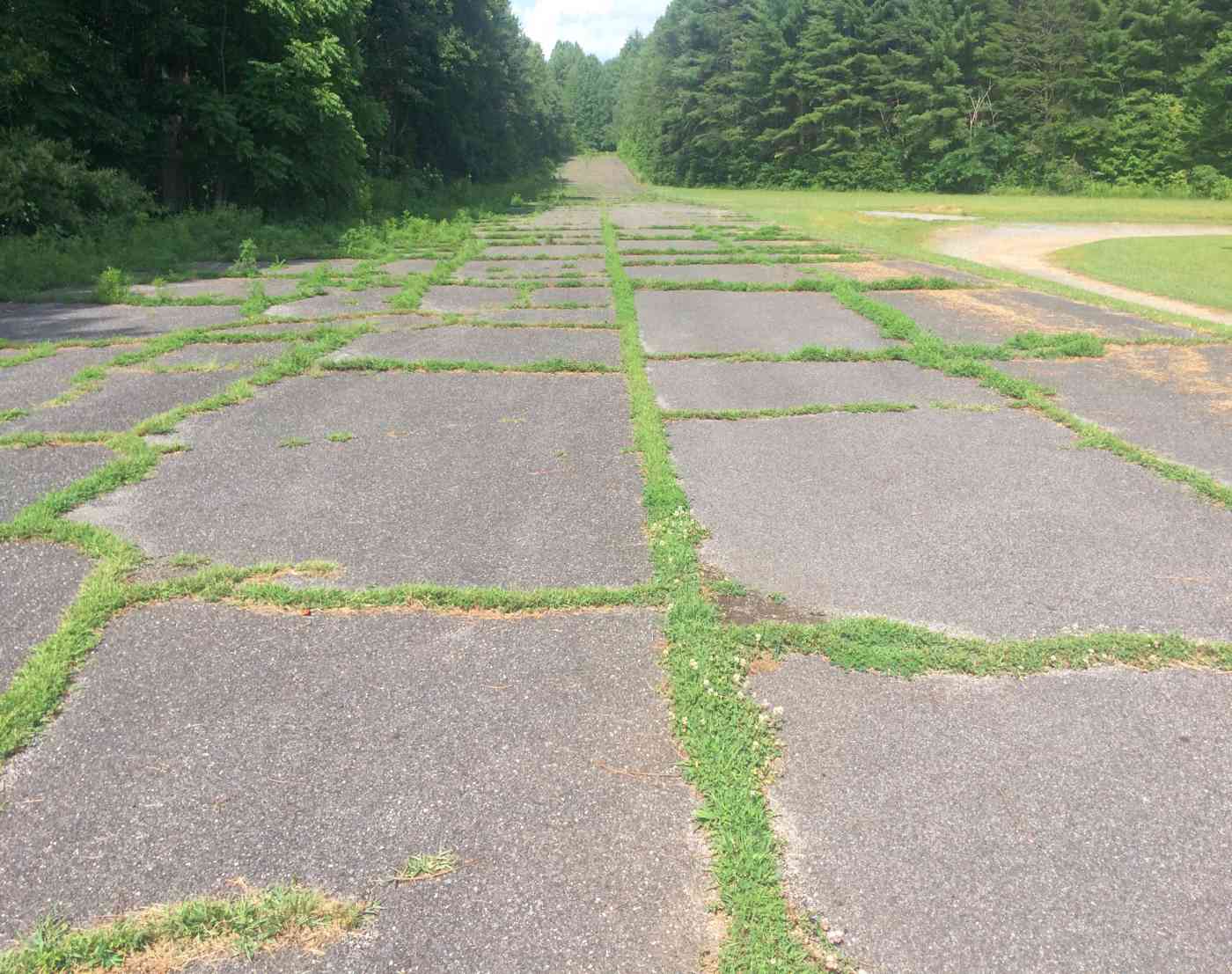 There is a narrower strip of asphalt over what looks to be very old but wider asphalt.”
