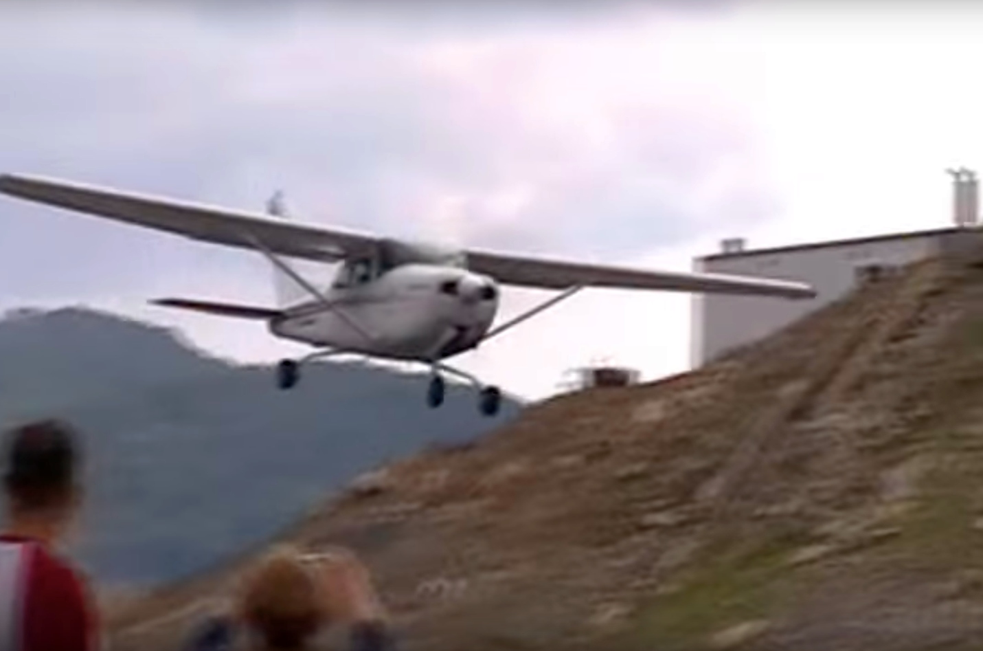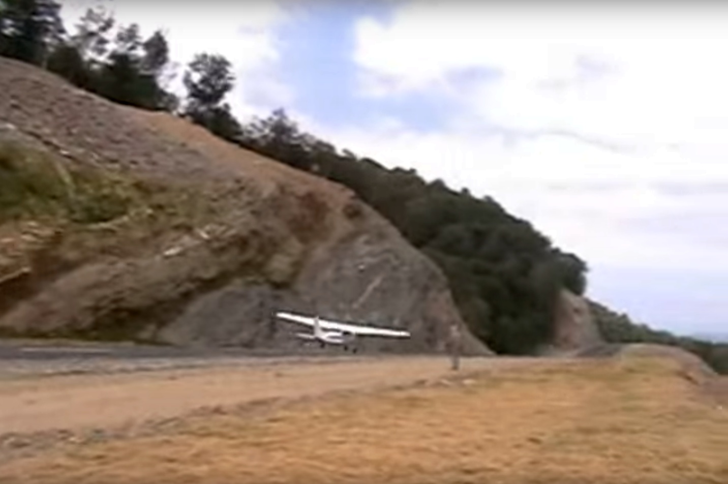 This mountaintop runway, literally carved out of the slope of a mountain at 4,500' elevation,
