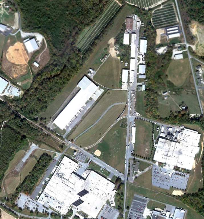 visible immediately adjacent to the northwest side of the large industrial building in the above aerial photo.