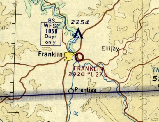It depicted Ferguson Landing Field as having an single paved northeast/southwest runway, and one building on the west side.