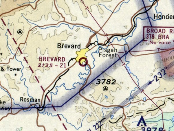 The October 1968 Charlotte Sectional Chart depicted Brevard as a public-use airport having a 2,100' unpaved runway.