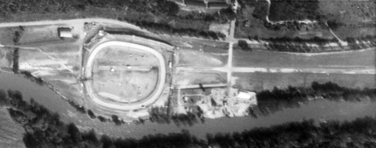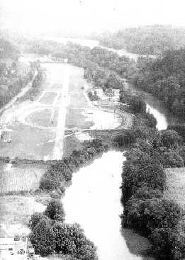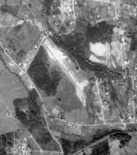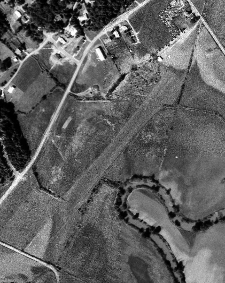 A 1994 aerial view showed a road cutting across the middle of the former Ferguson Landing Field runway.