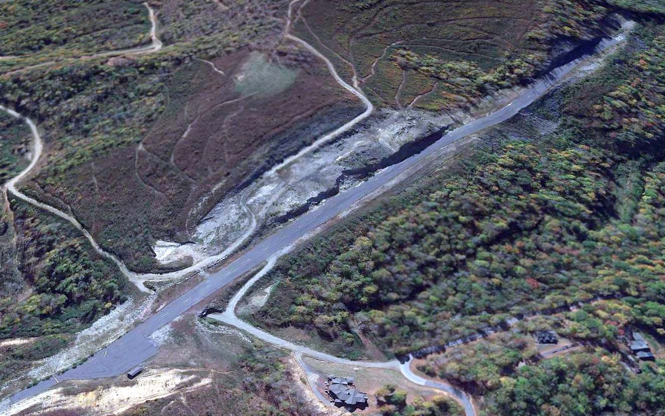 The last photo which has been located showing Skyline Peak Airport still marked with active-runway markings was a 2010 aerial view looking southwest.