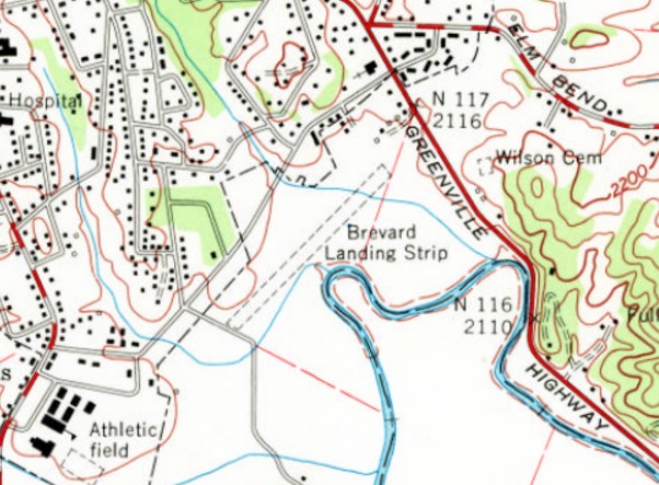 The 1965 USGS topo map (courtesy of Dallam Oliver-Lee) labeled the field as “Asheville-Hendersonville Airport (abandoned)”.