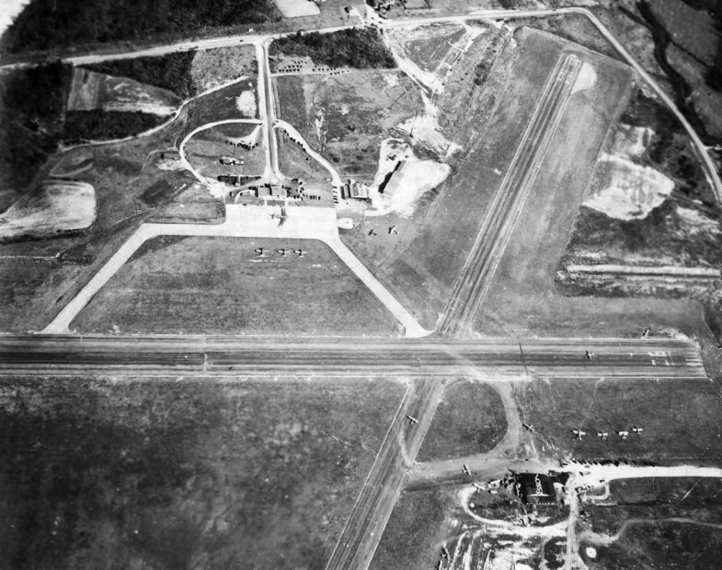 A small group of buildings was located on the west side of the field, but they did not appear to be big enough to be hangars.