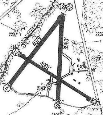 The Lake Logan Airfield, as depicted on the 1979 USGS topo map.