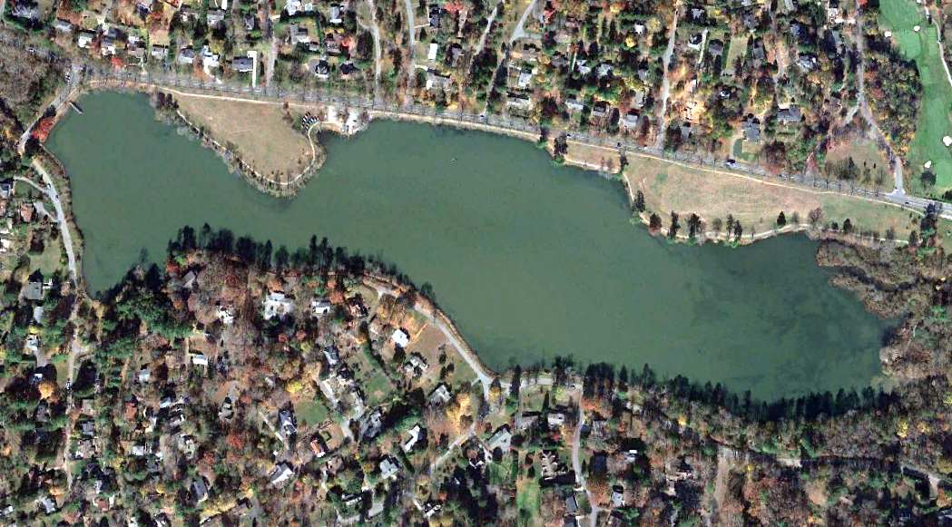 A 2015 aerial view looking northwest showed that the southern & northern ends of the Lake Logan runway pavement remained intact,