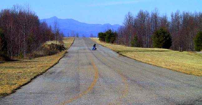 A 2004 photo by Rod Wright, looking south along the abandoned runway at Lake Logan.