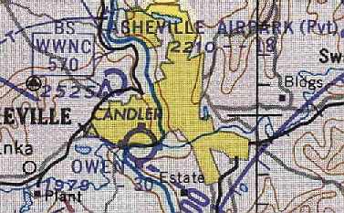 The site of the Asheville-Hendersonville Airport is located north of the intersection of Mills Gap Road & L A White Road.