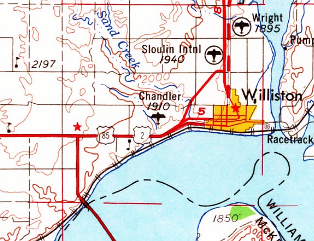 According to Wikipedia, “The first airport to serve Williston was east of the city near Little Muddy Creek.