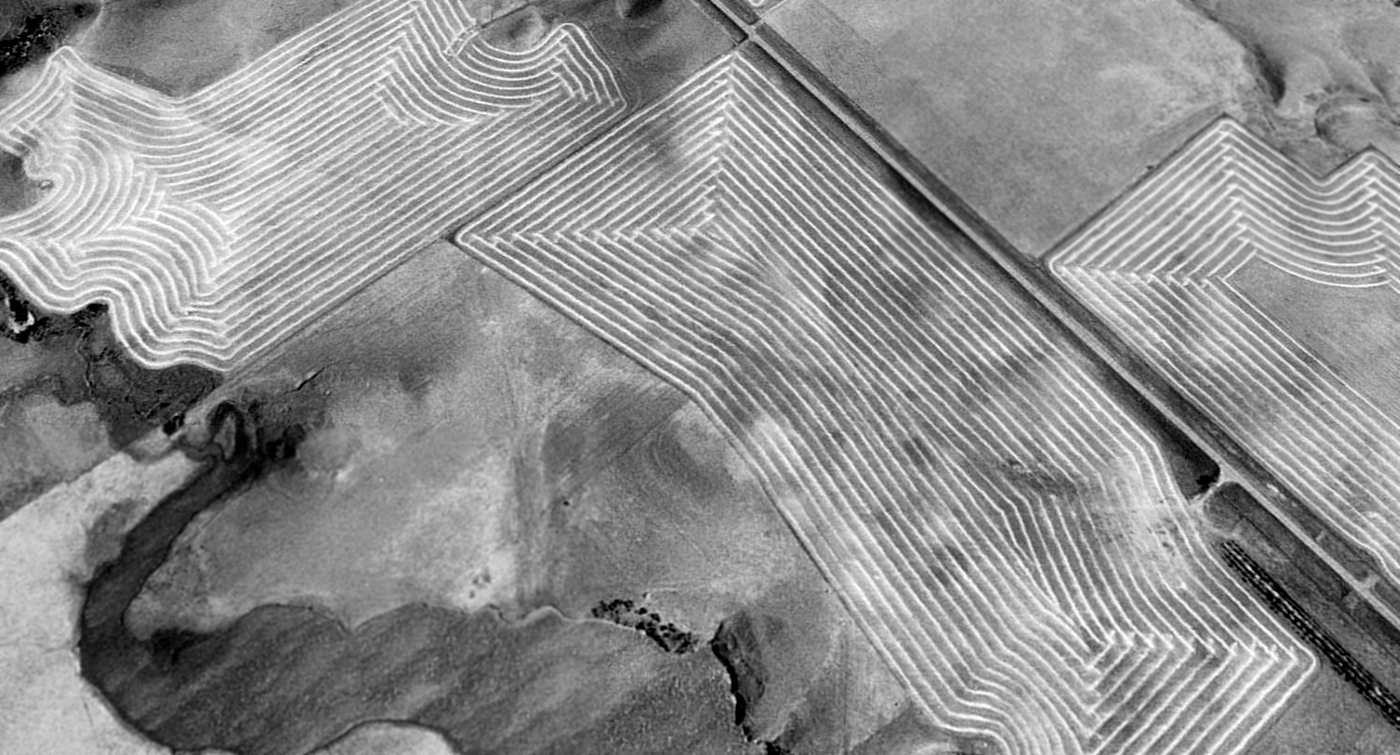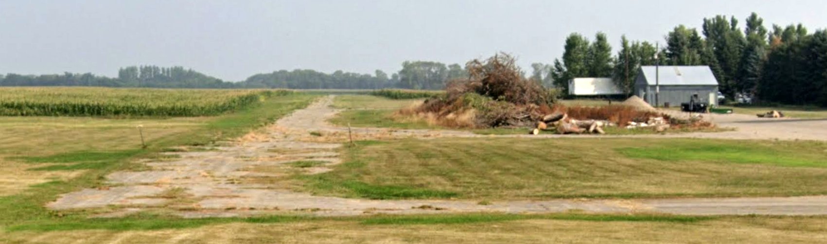 A 1997 USGS aerial view looking northeast showed that the site of the original Minnkota Airfield had been reused for farming, with the land processed by a combine or a swather.