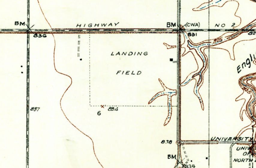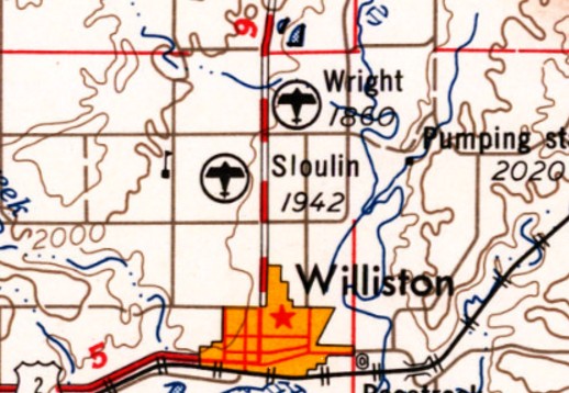 The only aeronautical chart depiction which has been located of the airport on the east side of Williston was on the July 1935 Williston Sectional Chart.