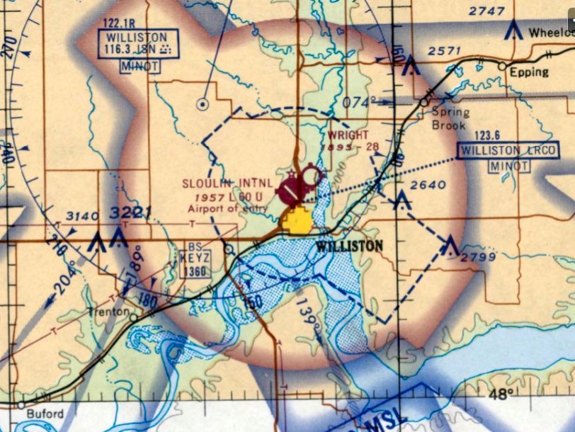 Note that it depicted a total of 4 airports located in close proximity to each other, all west to north of the town of Williston.