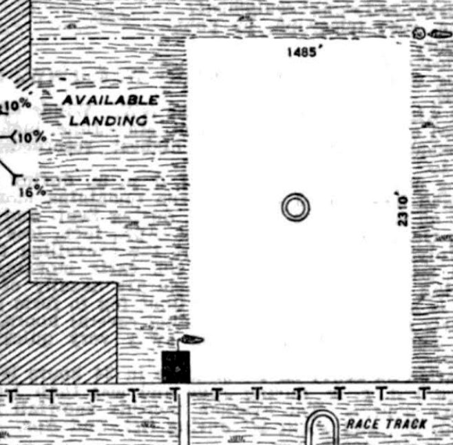 It was said to consist of an 83 acre rectangular sod field measuring 2,310' north/south, with a building depicted on the southwest corner.