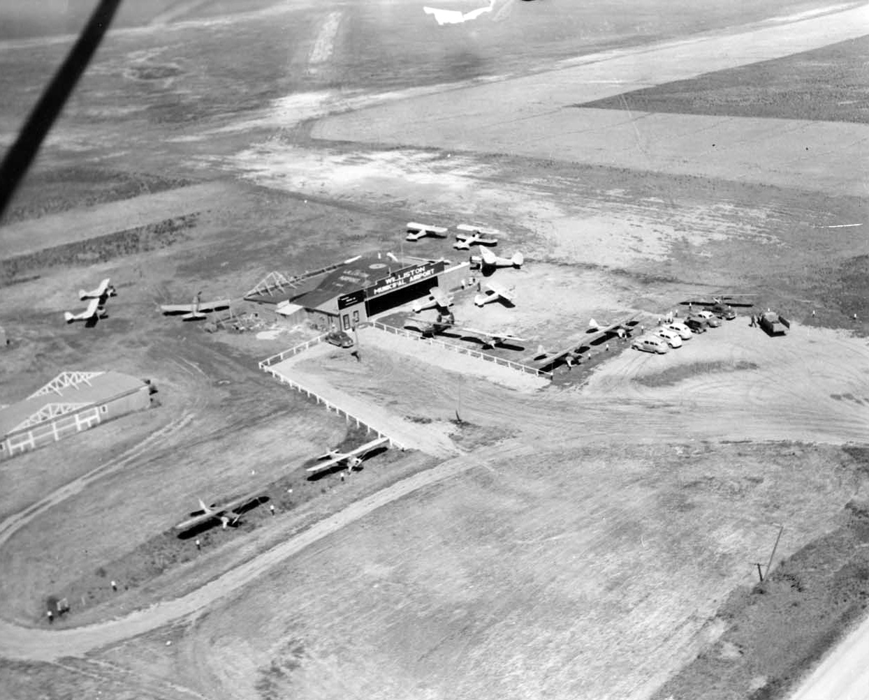 A circa 1940s aerial view by Bill Shemorry depicted Williston Municipal Airport as having a total of 14 light single-engine monoplanes & biplanes