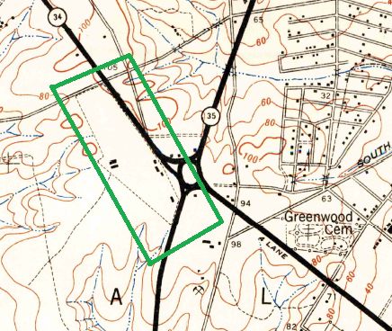 Amazingly, a 600' long segment of the taxiway asphalt still remained visible in the bushes behind the parking lot of one building, in the center-right of the photo.