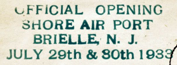 A postmark commemorated the 7/29/33 Official Opening of Shore Airport (courtesy of Joe Doherty).