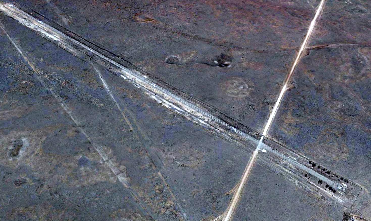 "The airfield has big X's along the runway, but otherwise looks in good condition (as best I could tell at 17,000 ft)."