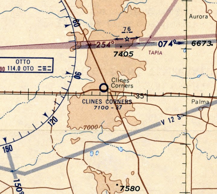 Matt Franklin observed that this chart depicted Clines Corners Airport on the “wrong north side of the interstate, but I think this was a cartography error.”
