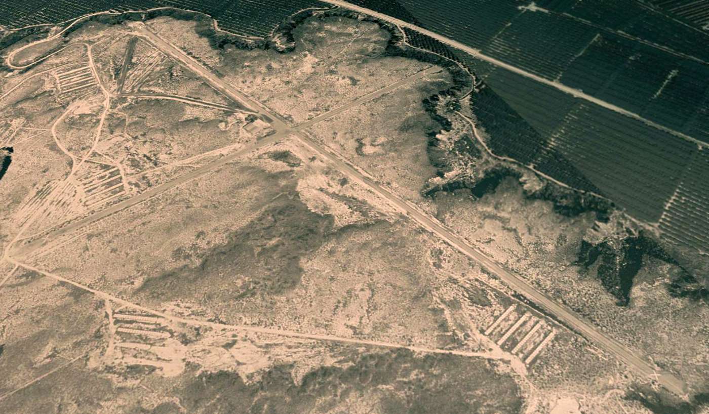 A 2017 aerial view looking northeast showed no trace remaining of Mesquite Airfield.