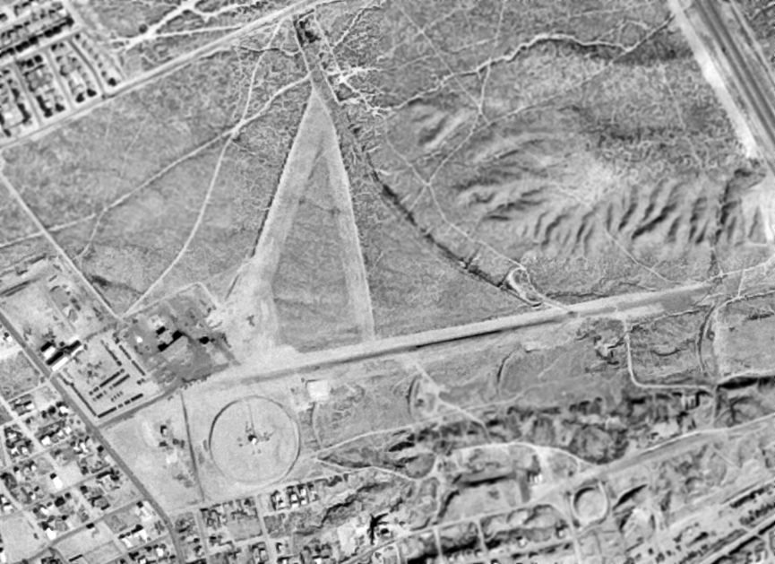 A 1984 aerial photo showed pecan groves covering the site of the Mesquite Airfield.